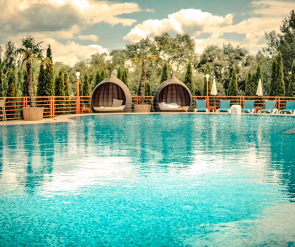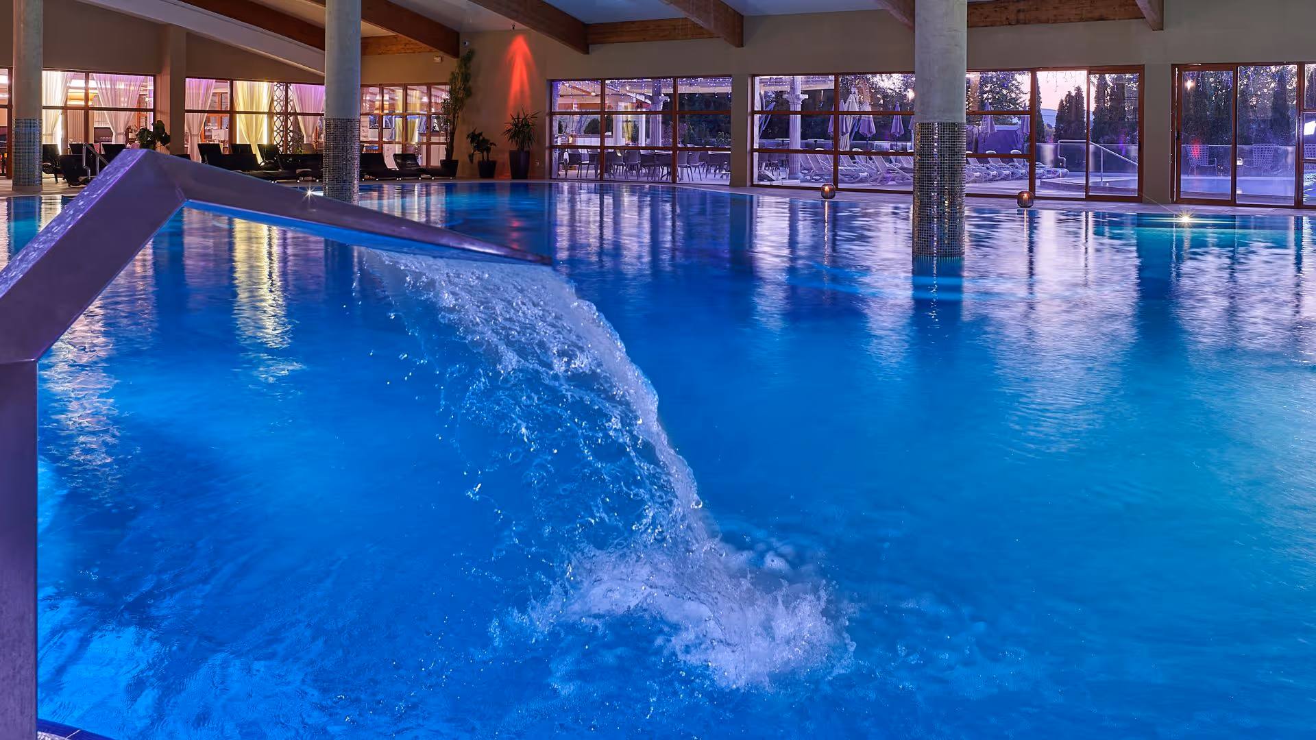 Large Indoor thermal pool, large indoor whirlpool, outdoor pool (summer season).
